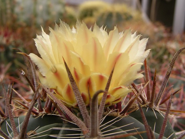 Krásny, jedinečný kvet druhu Ferocactus santa-maria