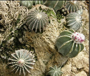 Aztekium hintonii, v prírode často rastie spoločne s Geohintonia mexicana